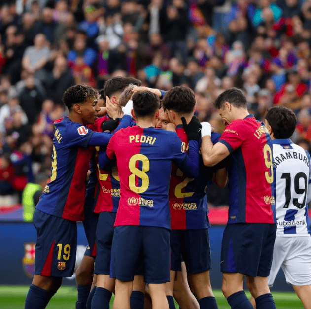 巴萨4-0皇家社会下周中,两队都有欧战的任务,巴萨将对阵本菲卡,皇家社会将大战曼联。